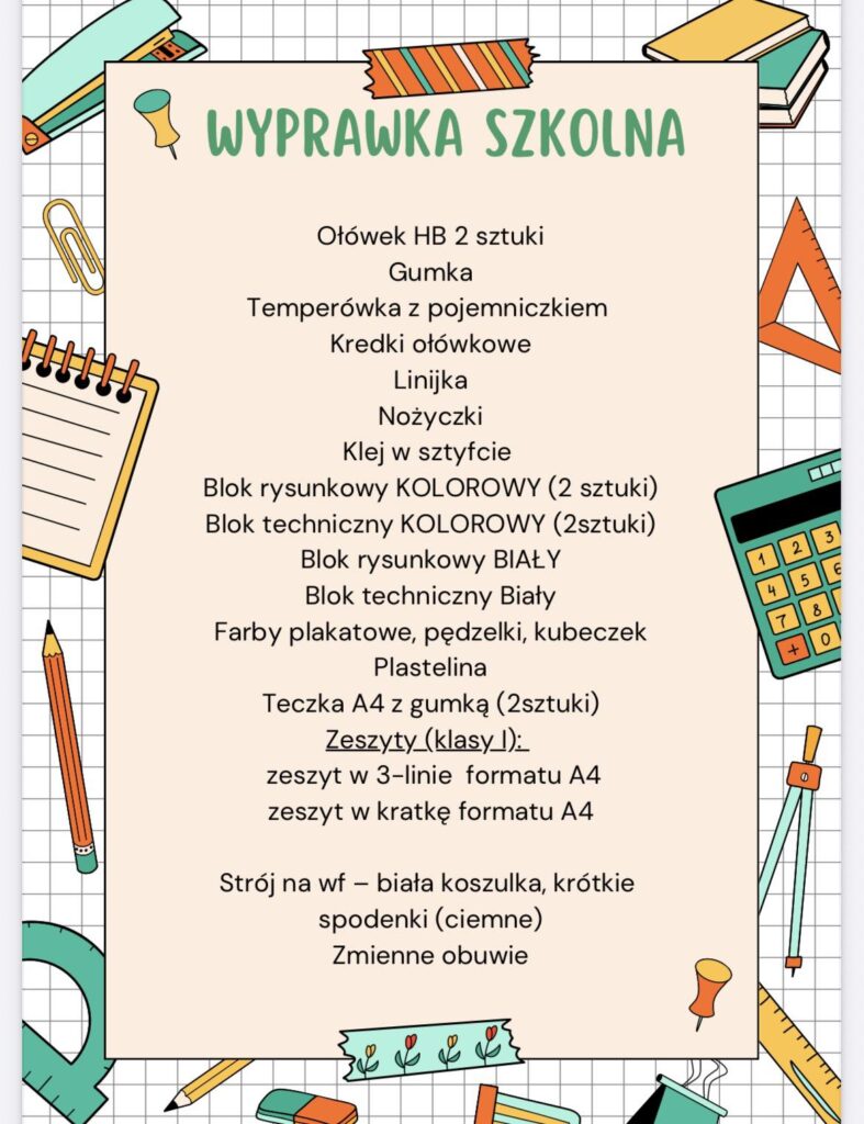 WYPRAWKA SZKOLNA DLA UCZNIÓW KLAS 1