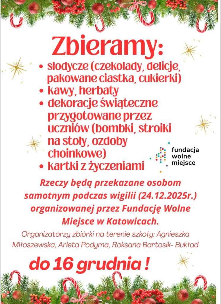 Świąteczna Zbiórka dla osób samotnych w Naszej Szkole